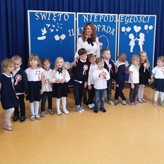 W dniu 8 listopada 2025 roku w naszym przedszkolu odbył się uroczysty apel z okazji Narodowego Święta Niepodległości. Uczniowie oddziału "0" przedstawili krótki program artystyczny, podczas którego recytowali wiersze, śpiewali pieśni patriotyczne oraz zaprezentowali taniec z biało-czerwonymi flagami.